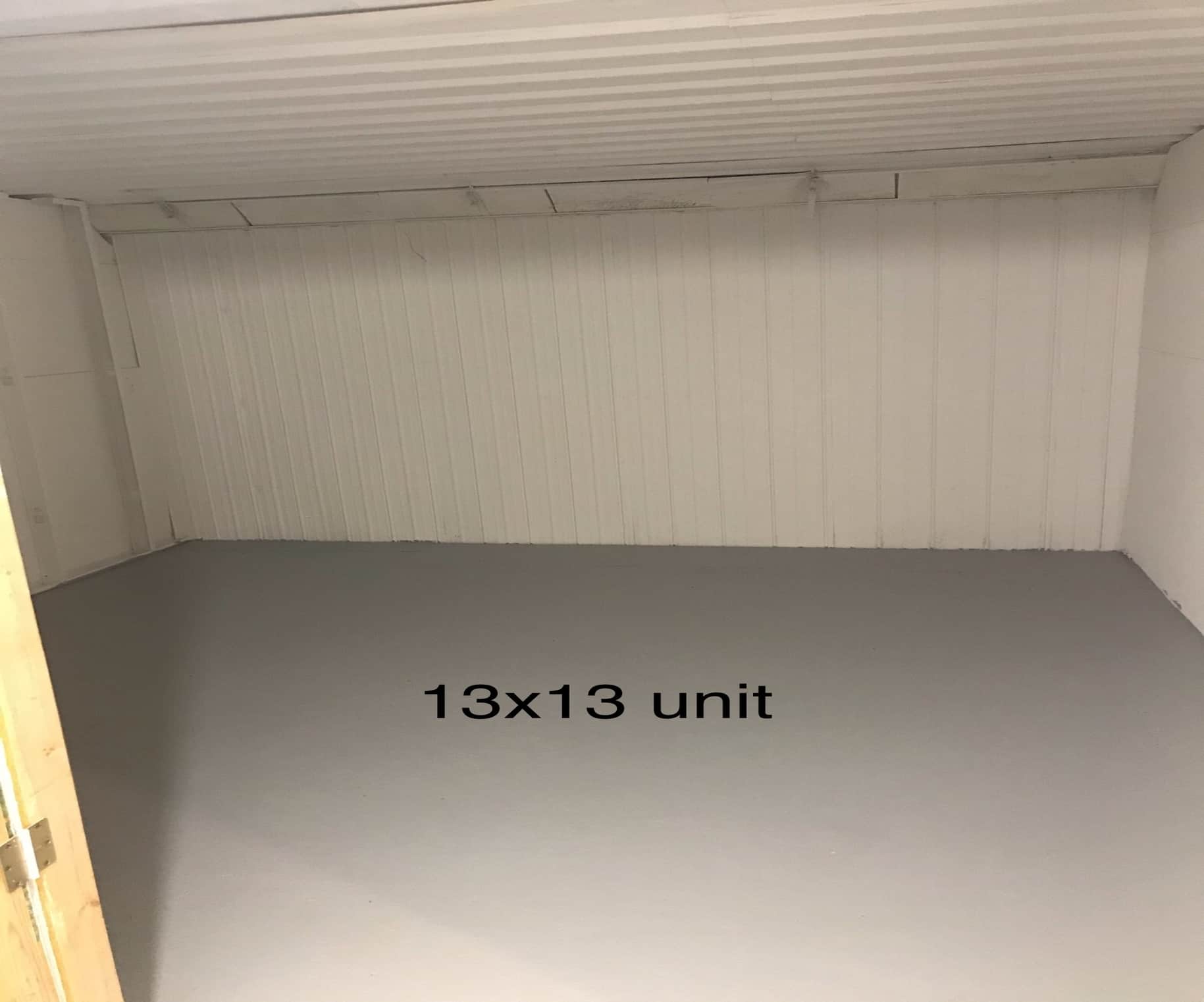 13′ x 13′ = 169 ft² – Ideal for: 3-5 bedroom house contents, contractor/ trade inventory, house staging, moving.
